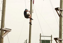 Dangle Maze (minimum age 9) – A great team work activity, in groups of four, participants help each other to climb to the top of a dangling structure 30 feet off the ground. In order to be successful, teams must steady the levels for one another and assist each other in reaching the levels.